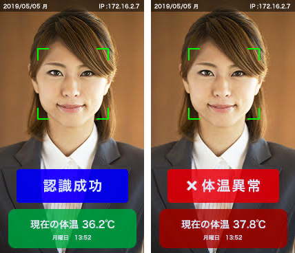 体温の管理、マスクの有無を顔認証AIサーモチェッカー、一台だけで完結することができ、従来より徹底した管理ができます。